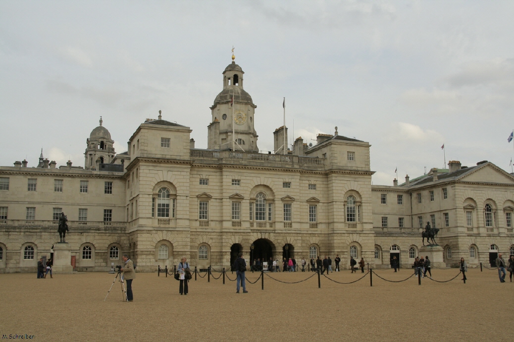Na ja, wir sind nicht wirklich gefahren - aber ist doch fast das gleiche oder? Das Horse Guards Gebäude mit dem großen Exerzierplatz davor sieht aus wie ein kleines Schlößchen. Das Gebäude dient als Quatier für die Reiterstaffel und der riesige Platz ist Schauplatz von eindrucksvollen Militärparaden.