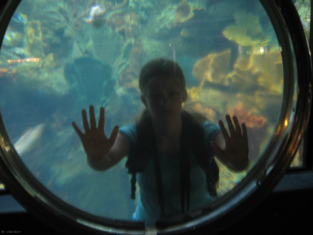 Danach folgt der Rest des Parks, wie der Haifischtunnel wo wir Auge in Auge mit den Haifischen sind, verschiedene Aquarien und auch noch 2 Shows (eine AcrobaticShow und ein 4-D Theater). Übrigens liegt in Amerika das Geld immer noch auf der Straße. Schon vor 10 Jahren haben wir an jeder Ecke Münzen gefunden. Dieses Jahr findet Michelle sie meistens. Hier im Park entdeckt sie ihren mittlerweile 7. Quarter!