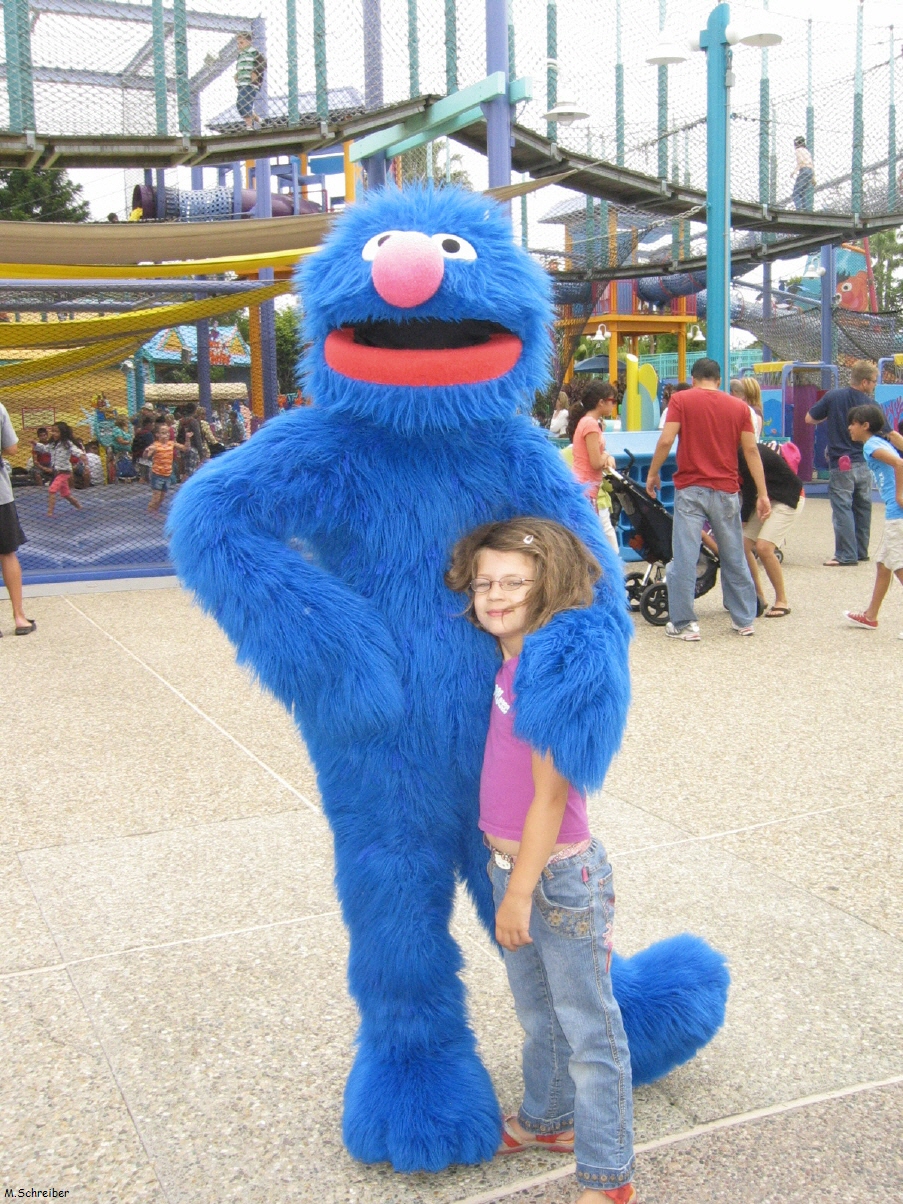 Die Kinder vergnügen sich noch eine Weile auf dem riesigen Sesamstraßen-Spielplatz mit seinen Klettertürmen, Hängebrücken und der Hüpfburg und Wally amüsiert sich prächtig vor einem Verzerrspiegel.