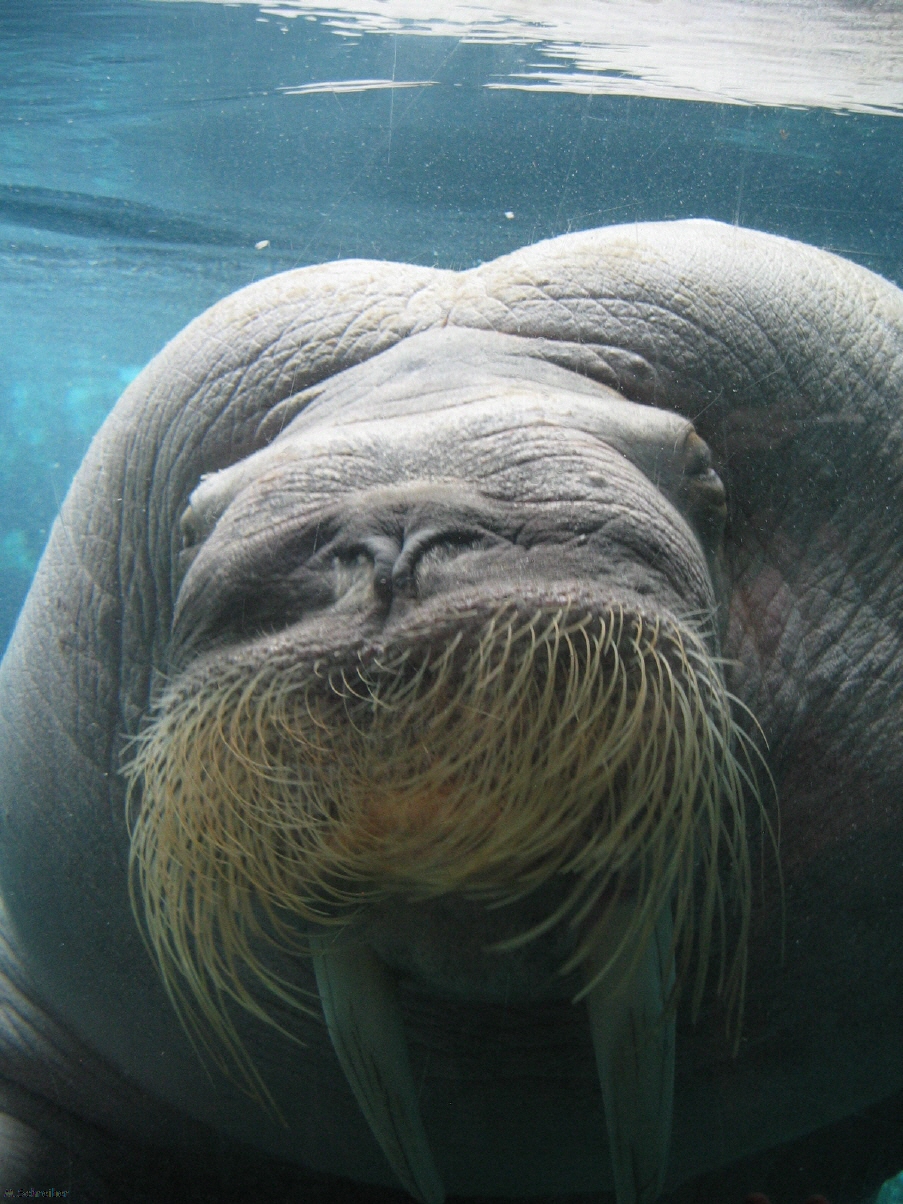 Die Tiere sind alle beeindruckend. Der Hammer aber ist das Walroß. So groß hätte ich mir das nie vorgestellt. Und dieses Walroß hier ist nicht wirklich gut drauf. Es wirft sich gegen das Fenster als wollte es dieses zerschlagen und drückt sich an der Scheibe die Schnauze platt. Wir sind alle so fasziniert, das wir hier fast eine halbe Stunde stehen und dem Tier zuschauen.