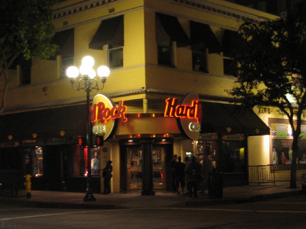 Nachdem wir jetzt so gesättigt sind, wollen wir nur noch schlafen. Aber natürlich nicht ohne vorher noch schnell das Hard Rock Cafe aufzusuchen um da unsere schon obligatorischen Sticker zu kaufen. Auch Adolf hat das Sammelfieber gepackt - warum er allerdings gleich 3 Stück kauft, kann ich nicht sagen?!